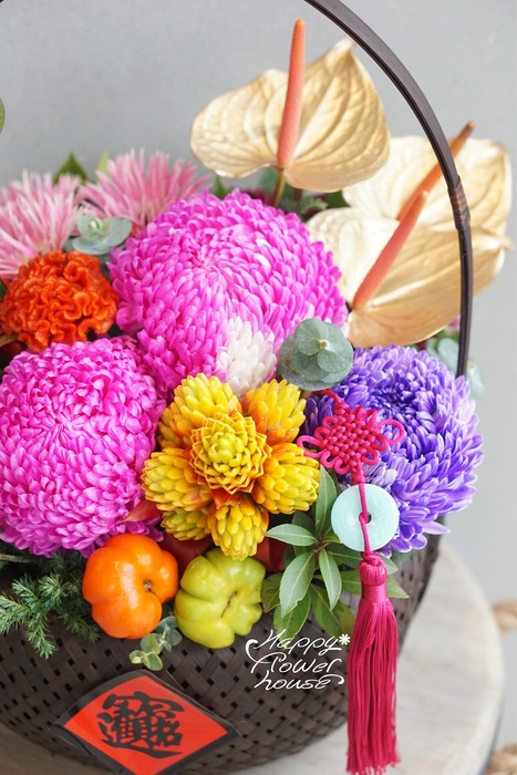 花材: 蕨芽 紅雞冠 火鶴 迷你太陽花-粉 牡丹菊-桃粉 牡丹菊-紫 金鑽鳳梨花 小金球 小南瓜 雪松 尤加利 過年飾品 >>如不是當季花,會採用等值及同色系花材替代!! >>花器不挑款,以實際出貨為主) >>若不允許變更請勿下單哦 或來電詢問~(03)-4250-555 注意事項: 1.限桃園中壢區外送,外縣市則委託當地設計師插花出貨。 2.商品因電腦螢幕設定與拍攝光線來源角度不同,進而與實體顏色略有差異,商品顏色請以實物為主。尺寸與其商品本體,略有差異,並非分毫不差,仍以實體為主,敬請見諒